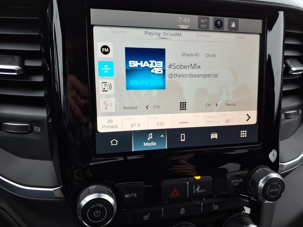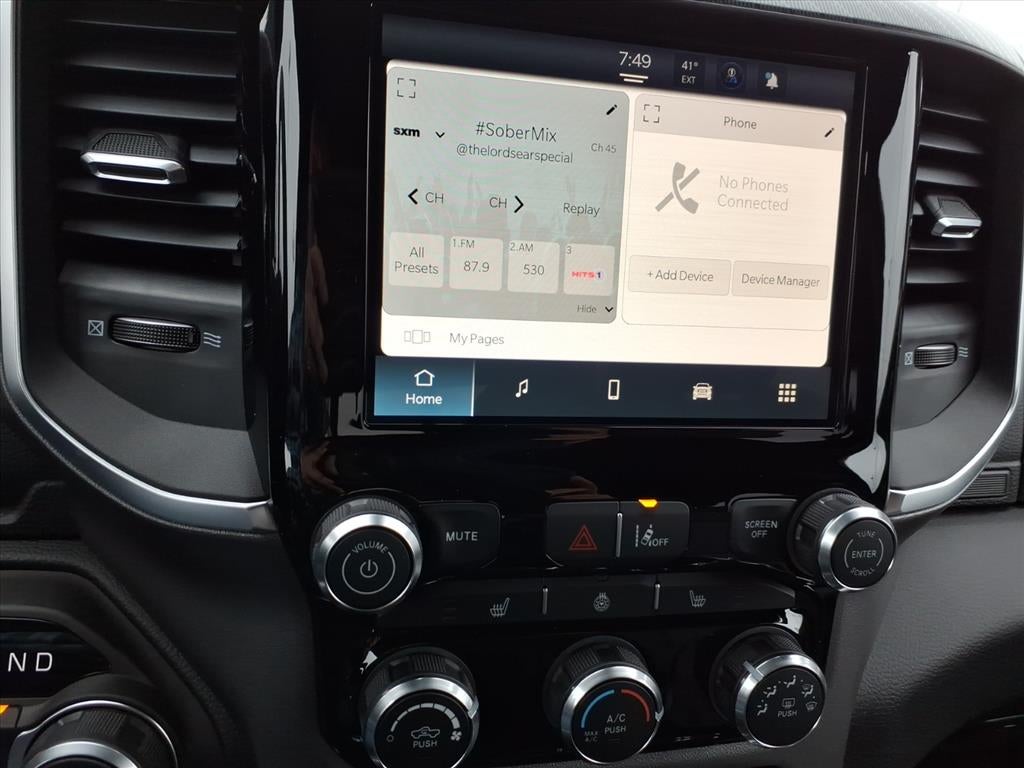 This unit features a hands-free Bluetooth® phone system. This vehicle has auto-adjust speed for safe following. The rear parking assist technology on the Ram 1500 will put you at ease when reversing. The system alerts you as you get closer to an obstruction. This 1/2 ton pickup is equipped with the latest generation of XM/Sirius Radio. This 1/2 ton pickup comes equipped with Android Auto for seamless smartphone integration on the road. Protect the vehicle from unwanted accidents with a cutting edge backup camera system. The Ram 1500 is pure luxury with a heated steering wheel. The satellite radio system in this 1/2 ton pickup gives you access to hundreds of nation-wide radio stations with a clear digital signal. Apple CarPlay: Seamless smartphone integration for this Ram 1500 - stay connected and entertained on the go! Start this unit from inside with remote start. The Ram 1500's Forward Collision Warning feature alerts drivers to potential front-end collisions.