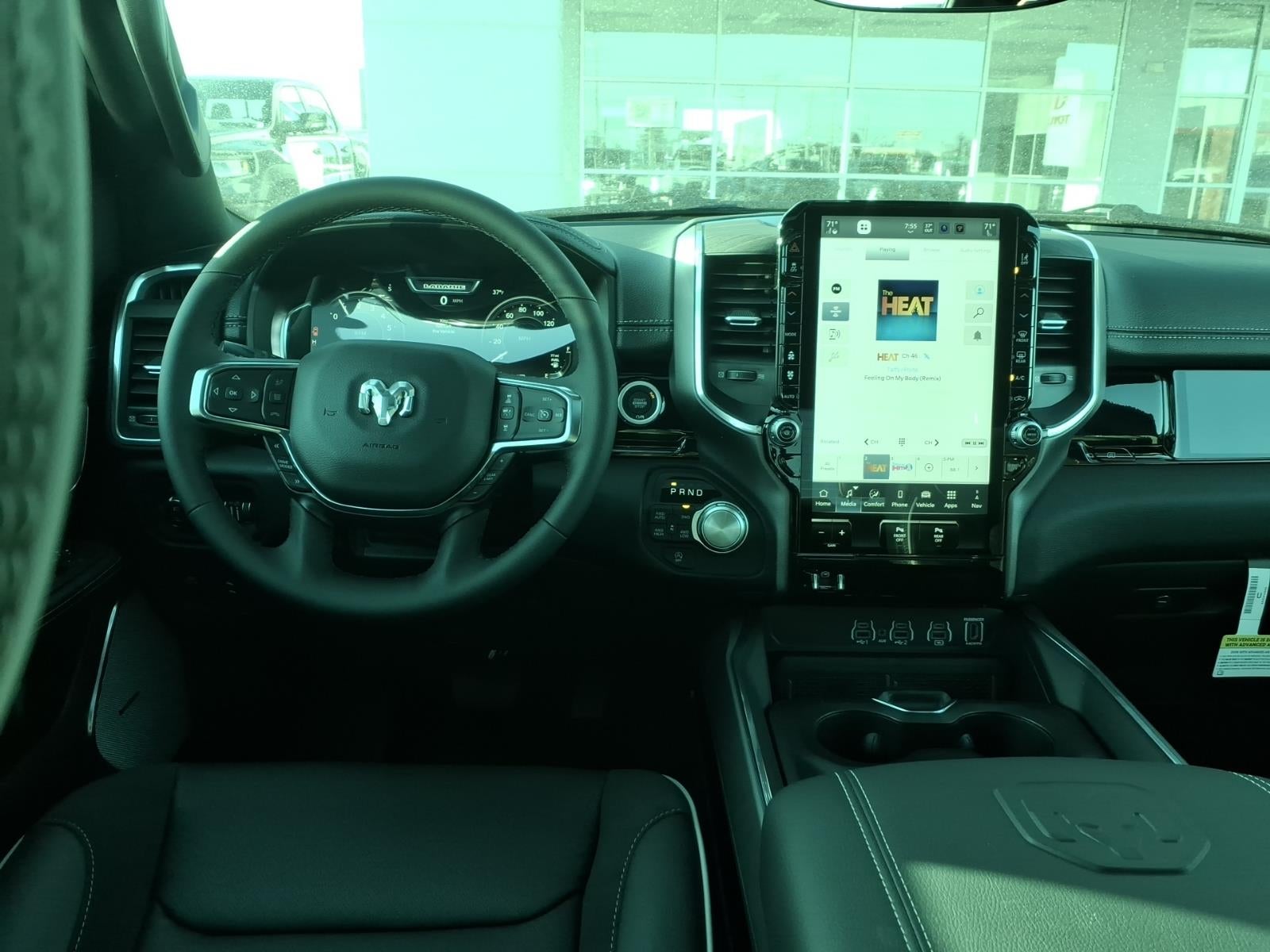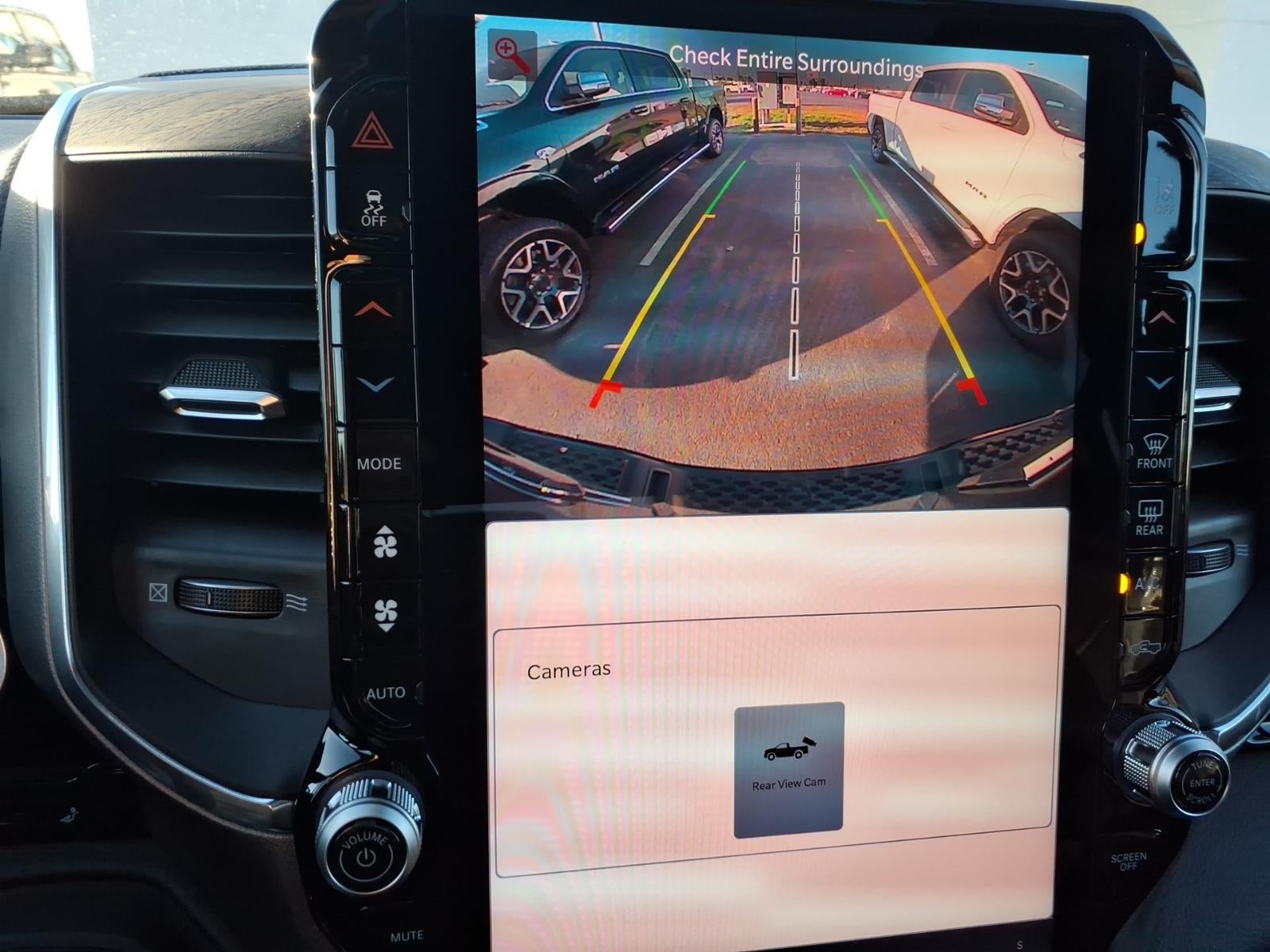 Quick Order Package 27H Laramie. Laramie Level 2 Equipment Group: SiriusXM Radio Service; USB Host Flip; Rain Sensitive Windshield Wipers; 14.4" Touchscreen Display; Integrated Center Stack Radio; Front Passenger Interactive Display; Integrated Voice Command with Bluetooth®; Connectivity - US/Canada; Uconnect 5 Nav with 14.4" Display; GPS Navigation; 4G LTE Wi-Fi Hot Spot; Harman/kardon 19 Speaker Premium Sound; SiriusXM with 360L; Connected Travel and Traffic Services; Cluster 12" TFT Color Display; Power Tailgate. Laramie Southwest Edition: Accent Color Premium Power Mirrors; Exterior Mirrors with Supplemental Signals; Power Deployable Running Boards; Exterior Mirrors Courtesy Lamps; RAM Grille Badge - Chrome; Auto Power-Folding Mirrors; Grille Surround 3 Body Color Tex 4 Chrome; Exterior Mirrors with Heating Element; Auto Dim Exterior Driver Mirror; Trailer Brake Control; Exterior Mirrors with Memory; Tow Hooks; MOPAR Lockable Console Storage; Body Color Front Bumper; Convex Wide-Angle Exterior Mirror Insert; Dual-Pane Panoramic Sunroof; Body Color Rear Bumper with Step Pads; Black Painted Exterior Mirrors Caps. Dual-Pane Panoramic Sunroof. Power Deployable Running Boards. RamBox Cargo Management System. MOPAR Lockable Console Storage. Trailer Brake Control. Diamond Black Crystal PC. MOPAR Front and Rear Rubber Floor Mats. 3.92 Rear Axle Ratio. **Equipment listed is based on original vehicle build and subject to change. Please confirm the accuracy of the included equipment by calling the dealer prior to purchase.**