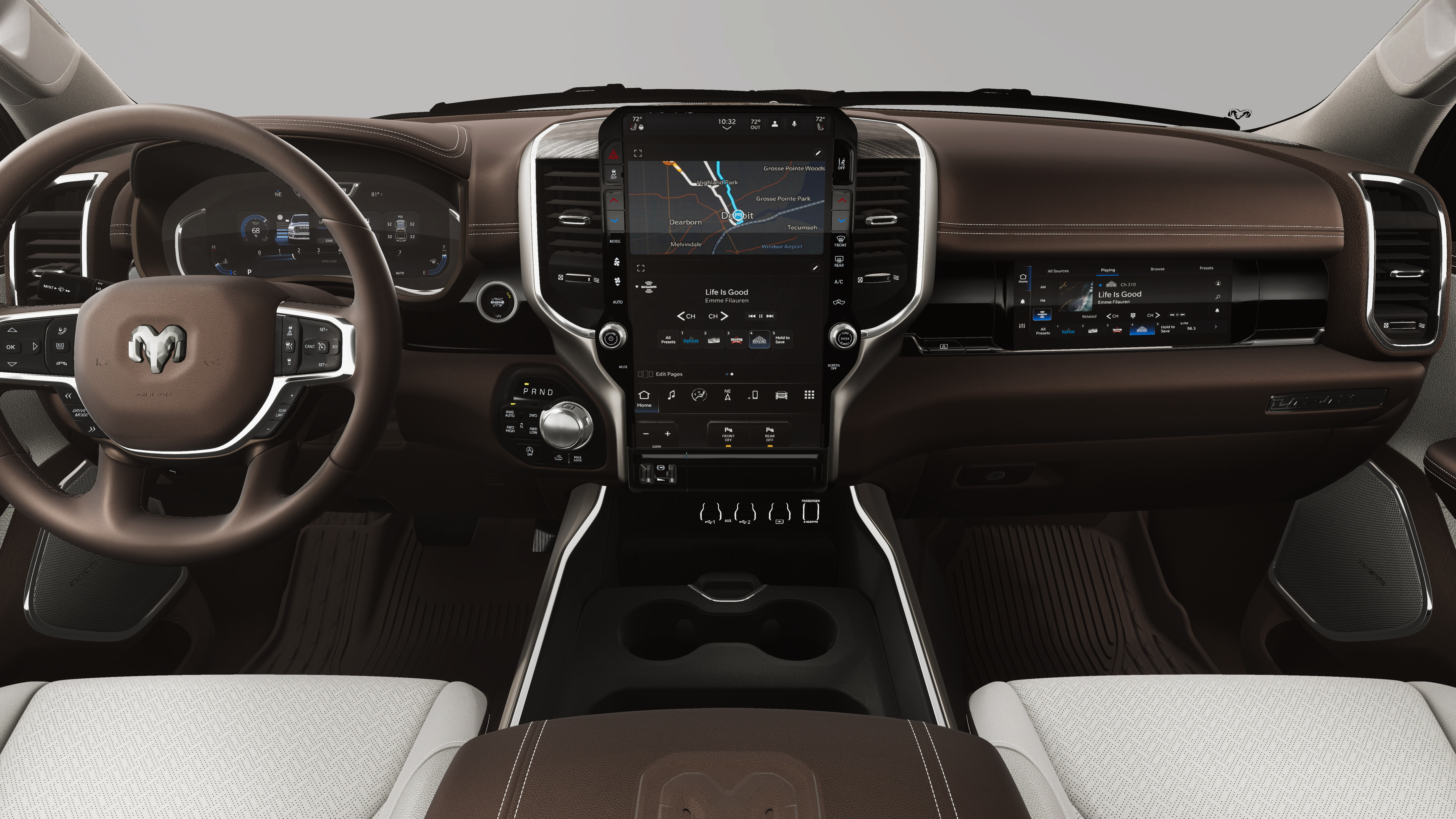 Keep your hands warm all winter with a heated steering wheel in this model . This 1/2 ton pickup has a premium sound system installed. The Ram 1500's Forward Collision Warning feature alerts drivers to potential front-end collisions. Bluetooth® technology is built into this vehicle, keeping your hands on the steering wheel and your focus on the road. You'll never again be lost in a crowded city or a country region with the navigation system on this Ram 1500. The leather seats in this model are a must for buyers looking for comfort, durability, and style. See what's behind you with the back up camera on this unit. This vehicle offers Android Auto for seamless smartphone integration. This 2026 Ram 1500 has automated speed control that adjusts to maintain a safe following distance, enhancing highway driving convenience. Start this vehicle from inside with remote start. This model offers Apple CarPlay for seamless connectivity.