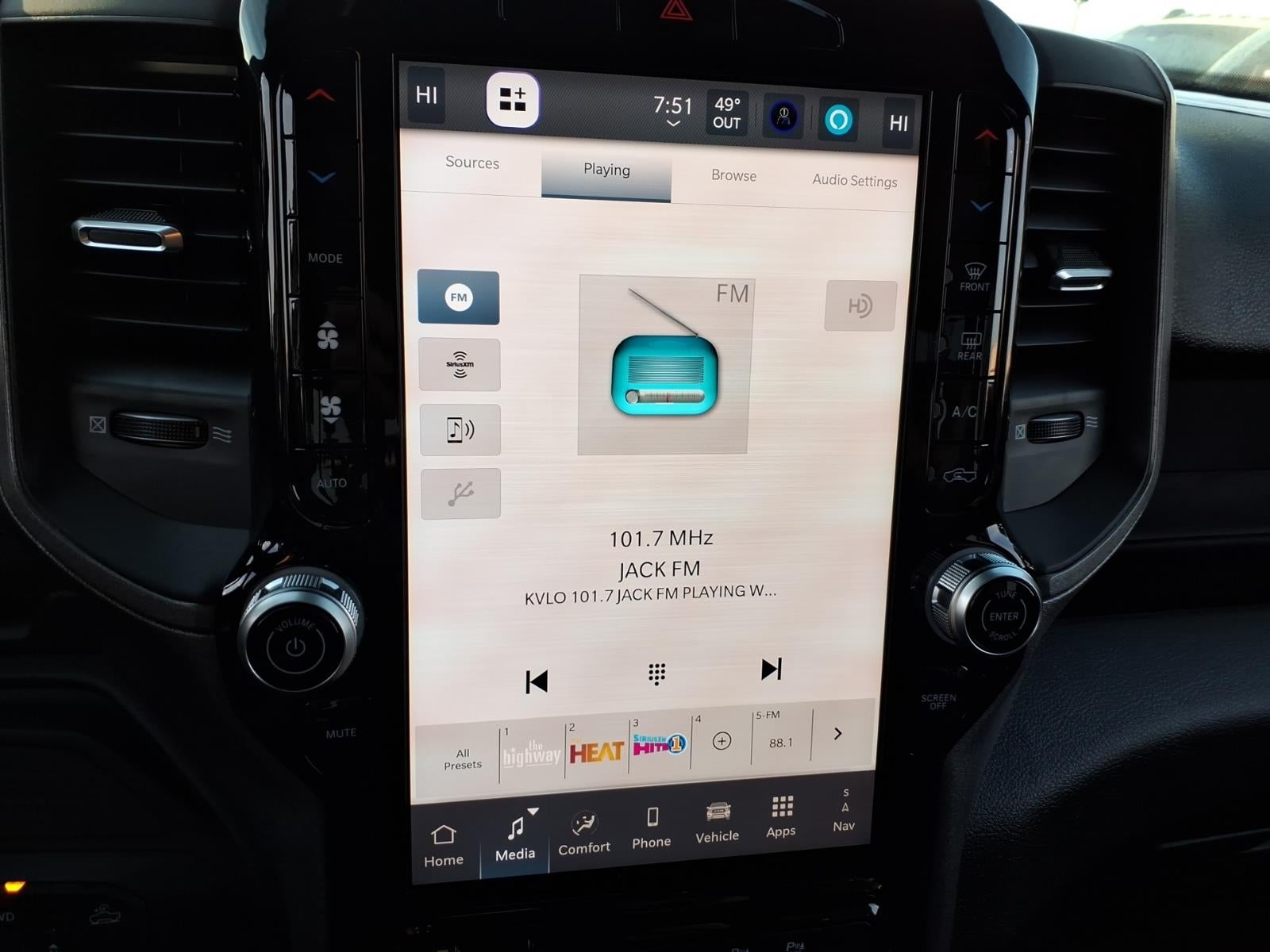 Tradesman Level 1 Equipment Group: Google Android Auto; SiriusXM Radio Service; Rear View Auto Dim Mirror; For Details. Visit DriveUconnect.com; For More Info. Call 800-643-2112; Rear Power Sliding Window; Integrated Voice Command with Bluetooth®; Connectivity - US/Canada; Emergency Vehicle Alert System (EVAS); 12" Touchscreen Display; Tinted Acoustic Windshield Glass; GPS Navigation; 4G LTE Wi-Fi Hot Spot; GPS Antenna Input; SiriusXM with 360L; Global Telematics Box Module; Connected Travel and Traffic Services; Exterior 115V AC Outlet; Alexa Built-In; Apple CarPlay; Off-Road Info Pages; Selectable Tire Fill Alert; Trailer Tow Pages; 400W Inverter; Disassociated Touchscreen Display; HD Radio; Uconnect 5 Navigation with 12.0" Display Radio; Air Conditioning ATC with Dual Zone Control; 115-Volt Auxiliary Front Power Outlet. Convenience Group. Quick Order Package 2UB Warlock: 40/20/40 Split Bench Seat; 20" X 8.0" Black Diamond Cut Aluminum Wheels; Rear Folding Seat; Auto Power-Folding Mirrors; 4 Way Front Headrests; Front Armrest with Cupholders; Exterior Mirrors with Heating Element; Front Performance Tuned Shock Absorbers; Remote USB Port - Charge Only; Manual Adjust 4-Way Front Passenger Seat; Mirror Running Lights; Warlock Decal; Black Exterior Mirrors; 2 Way Rear Headrest Seat; Carpet Floor Covering; Power-Adjustable Convex Aux Mirrors; Rear Wheelhouse Liners; Forward and Reverse Utility Lights; Cloth 40/20/40 Bench Seat; Storage Tray; Power Heated Folding Telescopic Mirrors; Exterior Mirrors with Supplemental Signals; Exterior Mirrors Courtesy Lamps; Black Wheel Center Hub; Rear Performance Tuned Shock Absorbers; Manual Adjust 4-Way Driver Seat; LT285/60R20E BSW AT Tires; Transfer Case Skid Plate Shield; Power Adjust Mirrors; Goodyear Brand Tires; 18" Steel Spare Wheel; Black Wheel Flares; Power Telescoping Mirrors; MOPAR Front and Rear Rubber Floor Mats; Hill Assist. MOPAR Black Tubular Side Steps. Instrument Panel Mounted Auxiliary Switches. Clearance Lamps. **Equipment listed is based on original vehicle build and subject to change. Please confirm the accuracy of the included equipment by calling the dealer prior to purchase.**