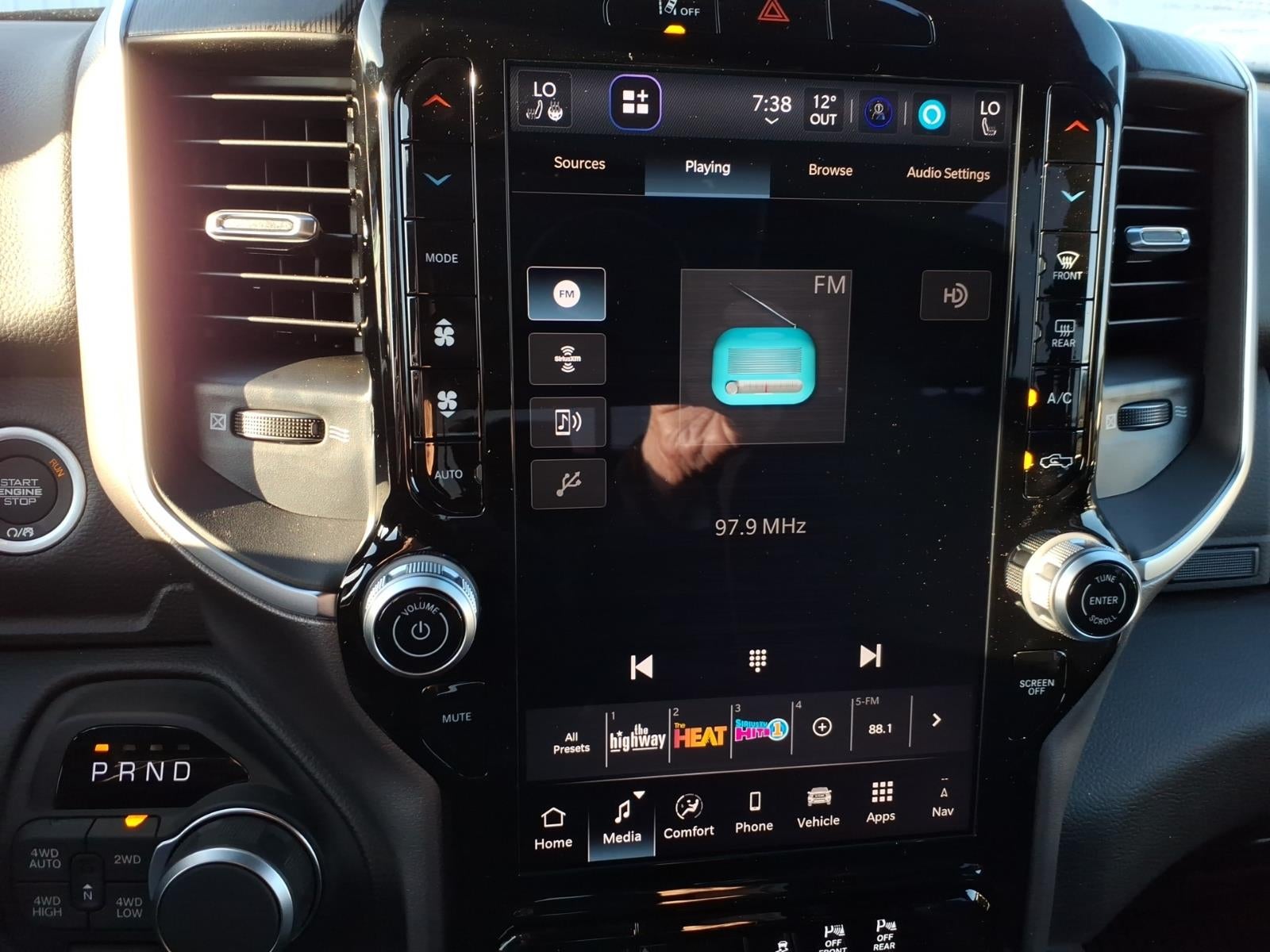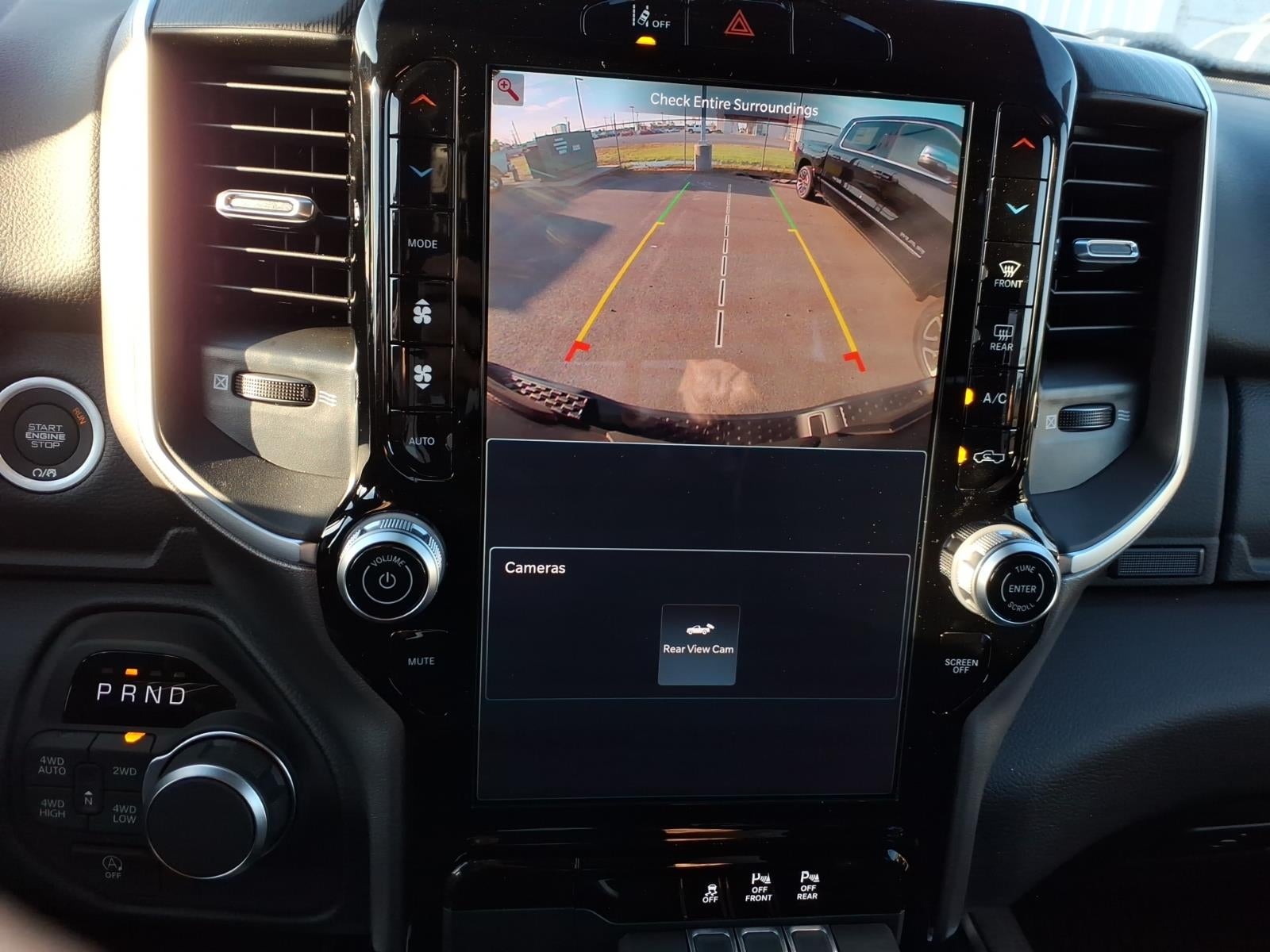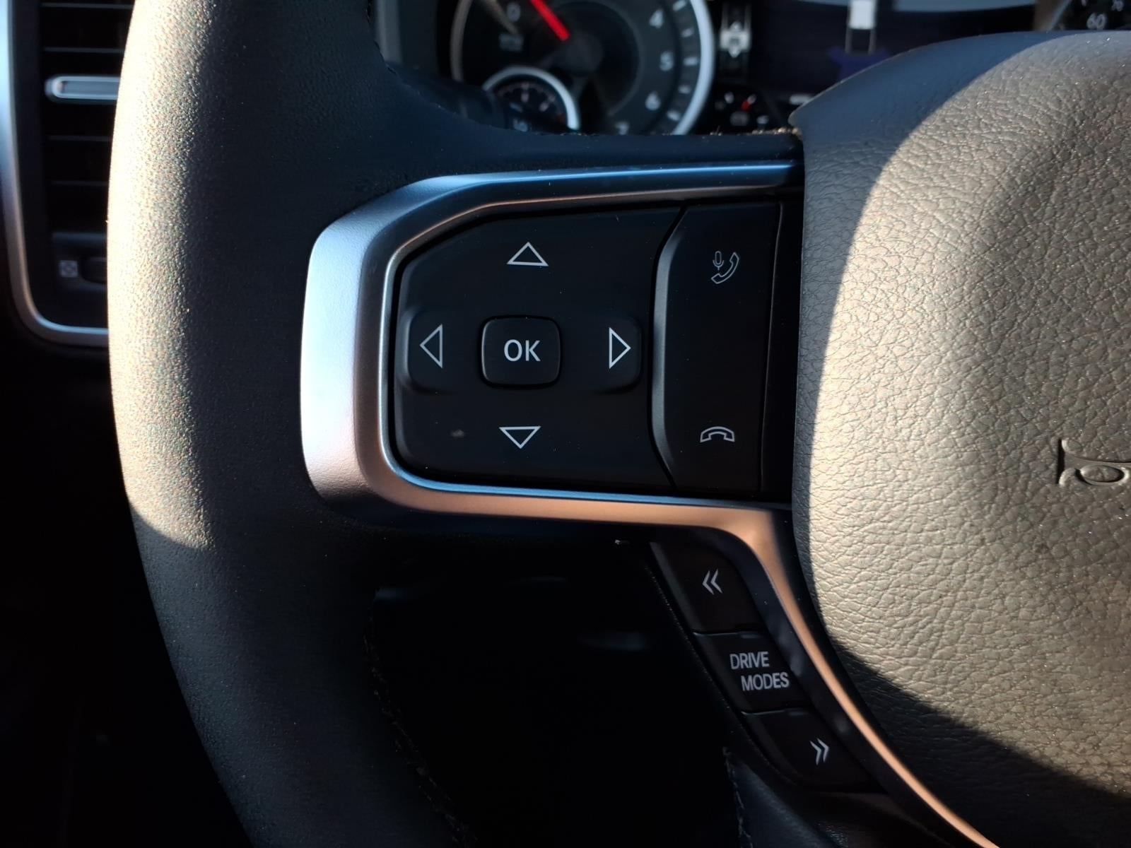 Quick Order Package 27Z Big Horn. Big Horn Level 2 Equipment Group: Google Android Auto; SiriusXM Radio Service; USB Host Flip; Power Adjustable Pedals; Leather Wrapped Steering Wheel; Integrated Voice Command with Bluetooth®; 12" Touchscreen Display; Glove Box Lamp; Auto Power-Folding Mirrors; 115V Auxiliary Rear Power Outlet; Media Hub with 2 Charge Only USBs; Heated Front Seats; Security Alarm; Black Premium Power Mirrors; Apple CarPlay; Premium Overhead Console; 9 Amplified Speakers with Subwoofer; Disassociated Touchscreen Display; Body Color Fender Flares; Remote Tailgate Release; 115V Auxiliary Power Outlet; LED Dome Lamp with On/off Switch; Universal Garage Door Opener; 2nd Row in Floor Storage Bins; Sun Visors with Illuminated Vanity Mirrors; LED Footwell Lighting; Rear Window Defroster; Integrated Center Stack Radio; Rear View Auto Dim Mirror; Rear Power Sliding Window; Connectivity - US/Canada; GPS Navigation; 4G LTE Wi-Fi Hot Spot; GPS Antenna Input; Overhead LED Lamps; Exterior Mirrors with Heating Element; Auto Dim Exterior Driver Mirror; SiriusXM with 360L; Global Telematics Box Module; Connected Travel and Traffic Services; Heated Steering Wheel; Configurable Drive Mode; 400W Inverter; HD Radio; Deluxe Cloth Bucket Seats; Uconnect 5 Navigation with 12.0" Display Radio; Exterior Mirrors with Supplemental Signals; Steering Wheel Mounted Audio Controls; Exterior Mirrors Courtesy Lamps; Air Conditioning ATC with Dual Zone Control; Cluster 7.0" TFT Color Display; Convex Wide-Angle Exterior Mirror Insert. Night Edition: 275/55R20 OWL All Season Tires; Accent Color Premium Power Mirrors; Exterior Mirrors with Supplemental Signals; Black Headlamp Bezels; Exterior Mirrors Courtesy Lamps; Grille Black Surround Black Mesh; Auto Power-Folding Mirrors; Exterior Mirrors with Heating Element; 20" X 9.0" Aluminum Painted Clad Wheels; Auto Dim Exterior Driver Mirror; Black Exterior Truck Badging; Anti-Spin Differential Rear Axle; Accent Color Door Handles; Accent Color Tailgate Handle; Black Interior Accents; Dual Exhaust with Black Tips; Body Color Front Bumper; Convex Wide-Angle Exterior Mirror Insert; Body Color Rear Bumper with Step Pads; Black Tail Lamp Bezels; RAM Grille Badge - Black; Black Painted Exterior Mirrors Caps. Quick Order Package 23Z Big Horn. 9 Amplified Speakers with Subwoofer. Anti-Spin Differential Rear Axle. 33 Gallon Fuel Tank. Forged Blue Metallic. MyFlexCare Service Plan. MOPAR Front and Rear Rubber Floor Mats. 3.92 Rear Axle Ratio. **Equipment listed is based on original vehicle build and subject to change. Please confirm the accuracy of the included equipment by calling the dealer prior to purchase.**