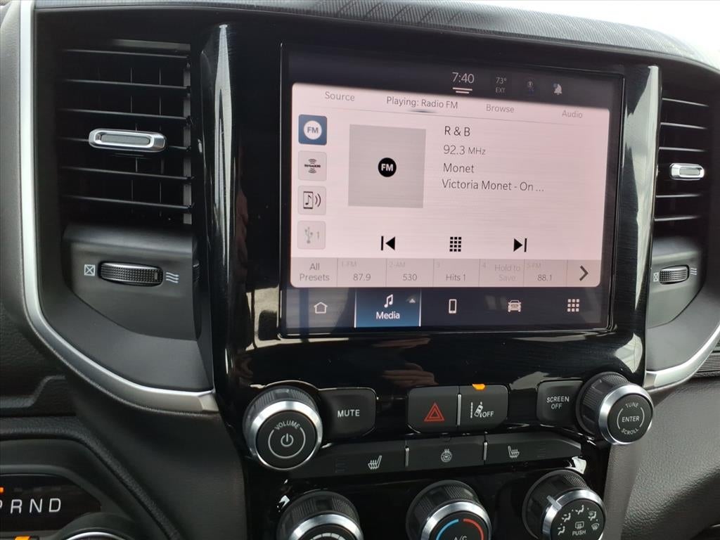 The vehicle is equipped with the latest generation of XM/Sirius Radio. This Ram 1500's Forward Collision Warning system alerts the driver to potential front-end collisions, enhancing safety. Never get into a cold vehicle again with the remote start feature on this model. This Ram 1500 has auto-adjust speed for safe following. Bluetooth® technology is built into this unit, keeping your hands on the steering wheel and your focus on the road. Protect this unit from unwanted accidents with a cutting edge backup camera system. This 1/2 ton pickup offers Apple CarPlay for seamless connectivity. This unit has satellite radio capabilities. The state of the art park assist system will guide you easily into any spot. This 2026 Ram 1500 is pure luxury with a heated steering wheel. This Ram 1500 offers Android Auto for seamless smartphone integration. This model has a V8, 5.7L high output engine. The gas and brake pedals adjust allowing you to fine-tune them for personal fit and comfort.