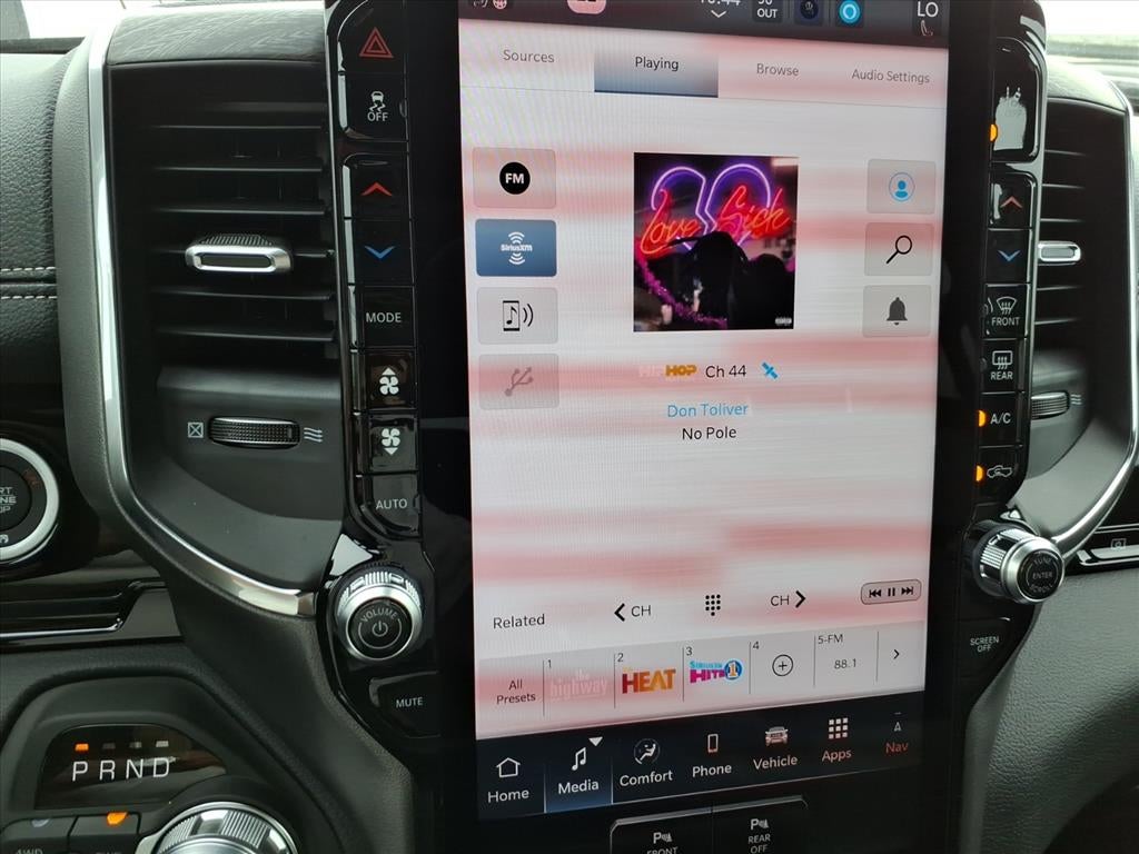 Laramie Level 2 Equipment Group: Google Android Auto; SiriusXM Radio Service; USB Host Flip; Rain Sensitive Windshield Wipers; Integrated Center Stack Radio; Front Passenger Interactive Display; Integrated Voice Command with Bluetooth®; Connectivity - US/Canada; GPS Navigation; 4G LTE Wi-Fi Hot Spot; GPS Antenna Input; SiriusXM with 360L; Global Telematics Box Module; Connected Travel and Traffic Services; Apple CarPlay; Disassociated Touchscreen Display; Secondary Active Grille Shutters; HD Radio; Smartphone as a Key Capable; 14.4" Touchscreen Display; Dual Wireless Charging Pad; Uconnect 5 Nav with 14.4" Display; Harman/kardon 19 Speaker Premium Sound; Cluster 12" TFT Color Display; Power Tailgate. Quick Order Package 21H Laramie. RamBox Cargo Management System. Wheel to Wheel Side Steps. Tri-Fold Tonneau Cover. 33 Gallon Fuel Tank. MOPAR Front and Rear Rubber Floor Mats. **Equipment listed is based on original vehicle build and subject to change. Please confirm the accuracy of the included equipment by calling the dealer prior to purchase.**