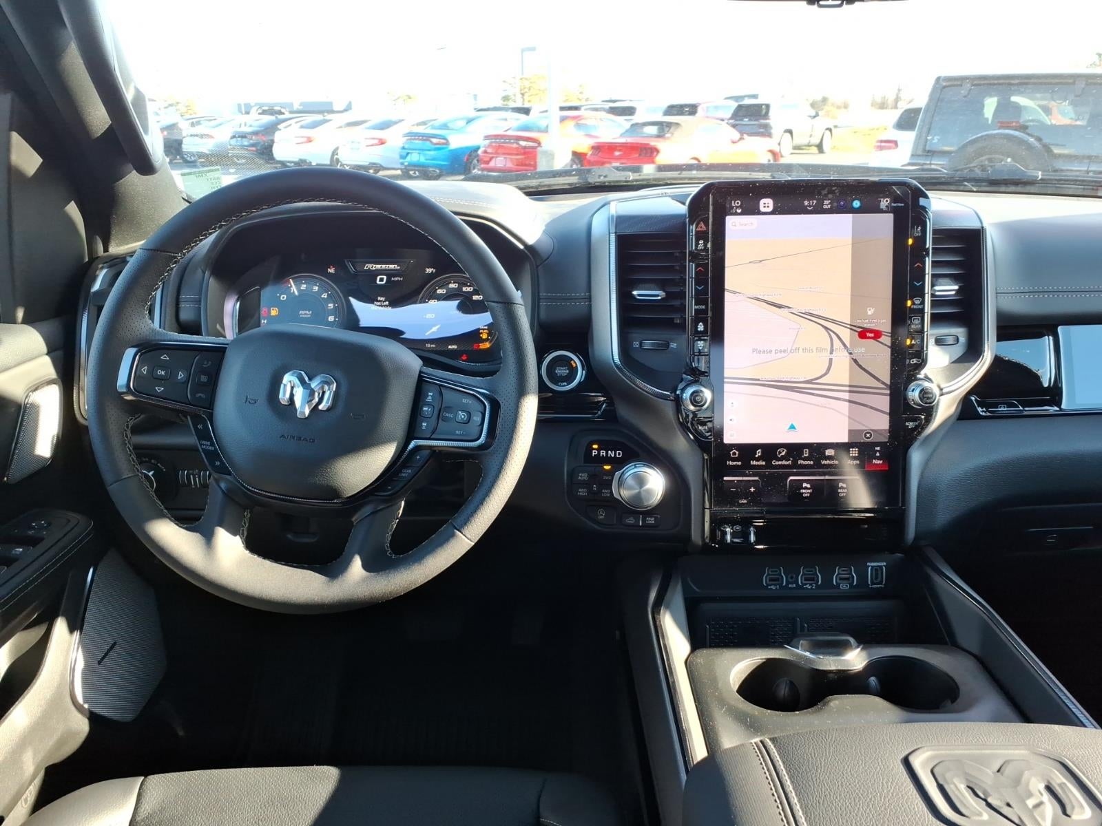 Technology Group: Head Up Display; LED CHMSL Lamp; Digital Rearview Mirror; 12-Way/1-way Trailer Connector. Bed Utility Group: MOPAR Spray in Bedliner; Truck Bed Cargo Divider; MOPAR 4 Adjustable Cargo Tie-Down Hooks; Exterior 115V AC Outlet; MOPAR Deployable Bed Step Center Mount. Quick Order Package 21W Rebel. Rebel Level 2 Equipment Group: Google Android Auto; SiriusXM Radio Service; USB Host Flip; Rear Window Defroster; Rain Sensitive Windshield Wipers; Integrated Center Stack Radio; Power Adjustable Pedals with Memory; Front Passenger Interactive Display; Integrated Voice Command with Bluetooth®; Power 2-Way Passenger Lumbar Adjust; Connectivity - US/Canada; Auto Power-Folding Mirrors; GPS Navigation; 4G LTE Wi-Fi Hot Spot; 115V Auxiliary Rear Power Outlet; GPS Antenna Input; Media Hub with 2 Charge Only USBs; Exterior Mirrors with Heating Element; Proximity Approach/departure Lamps; Auto Dim Exterior Driver Mirror; SiriusXM with 360L; Accent Color Door Handles; Global Telematics Box Module; Connected Travel and Traffic Services; Heated Second Row Seats; Power Adjust 8-Way Front Passenger Seat; Security Alarm; Apple CarPlay; Black Painted Exterior Mirrors Caps; Off-Road Information Pages; Exterior Mirrors Approach Lamps; Disassociated Touchscreen Display; HD Radio; Smartphone as a Key Capable; 14.4" Touchscreen Display; Accent Color Premium Power Mirrors; Dual Wireless Charging Pad; Exterior Mirrors with Supplemental Signals; Exterior Mirrors Courtesy Lamps; Uconnect 5 Nav with 14.4" Display; Harman/kardon 19 Speaker Premium Sound; 2-Door Passive Entry. Front Door Locks; Accent Color Tailgate Handle; Exterior Mirrors with Memory; Driver Seat Memory; Power Tailgate; Convex Wide-Angle Exterior Mirror Insert; Radio/driver Seat/mirrors/pedals Memory. Lux Leather Trimmed Bucket Seats. Multi-Function Tailgate. RamBox Cargo Management System. Trailer Brake Control. Forged Blue Metallic. Forged Blue Metallic. **Equipment listed is based on original vehicle build and subject to change. Please confirm the accuracy of the included equipment by calling the dealer prior to purchase.**