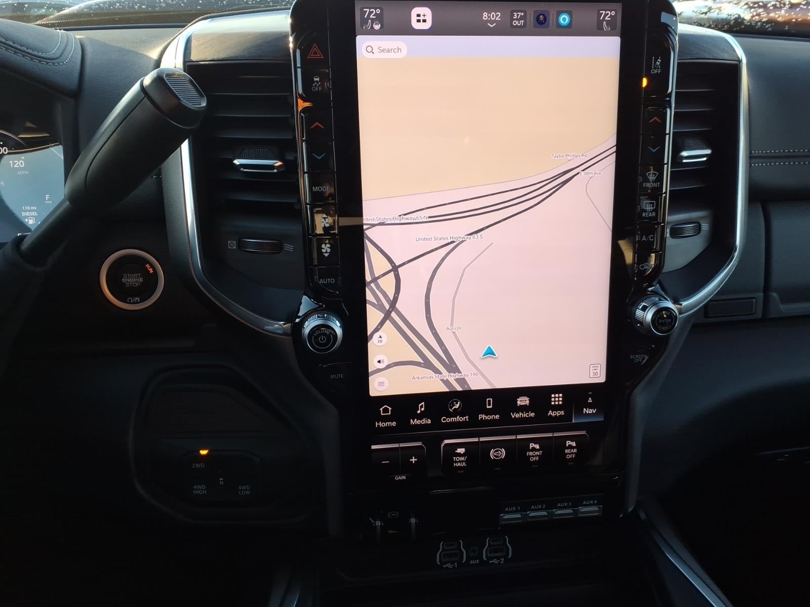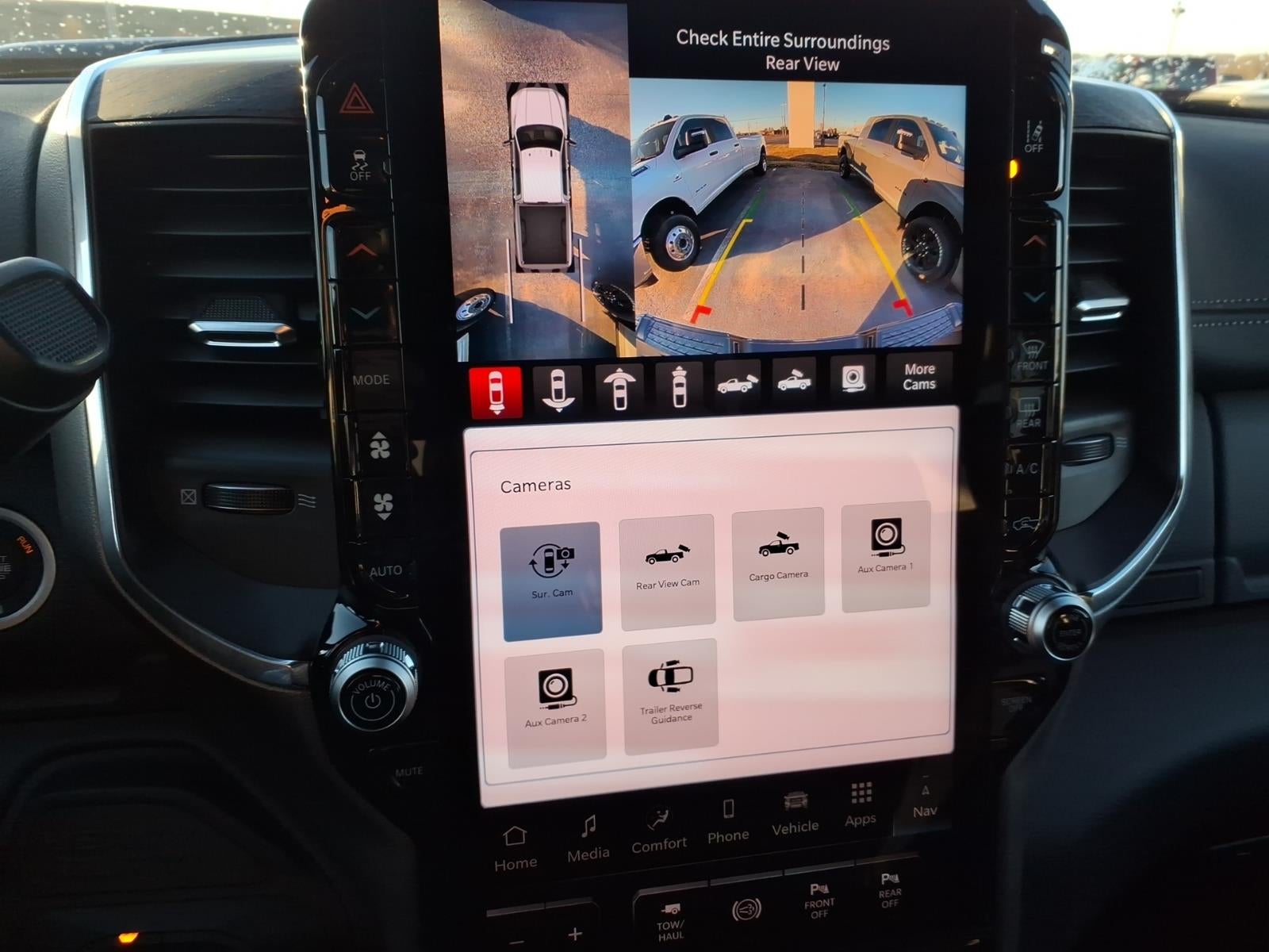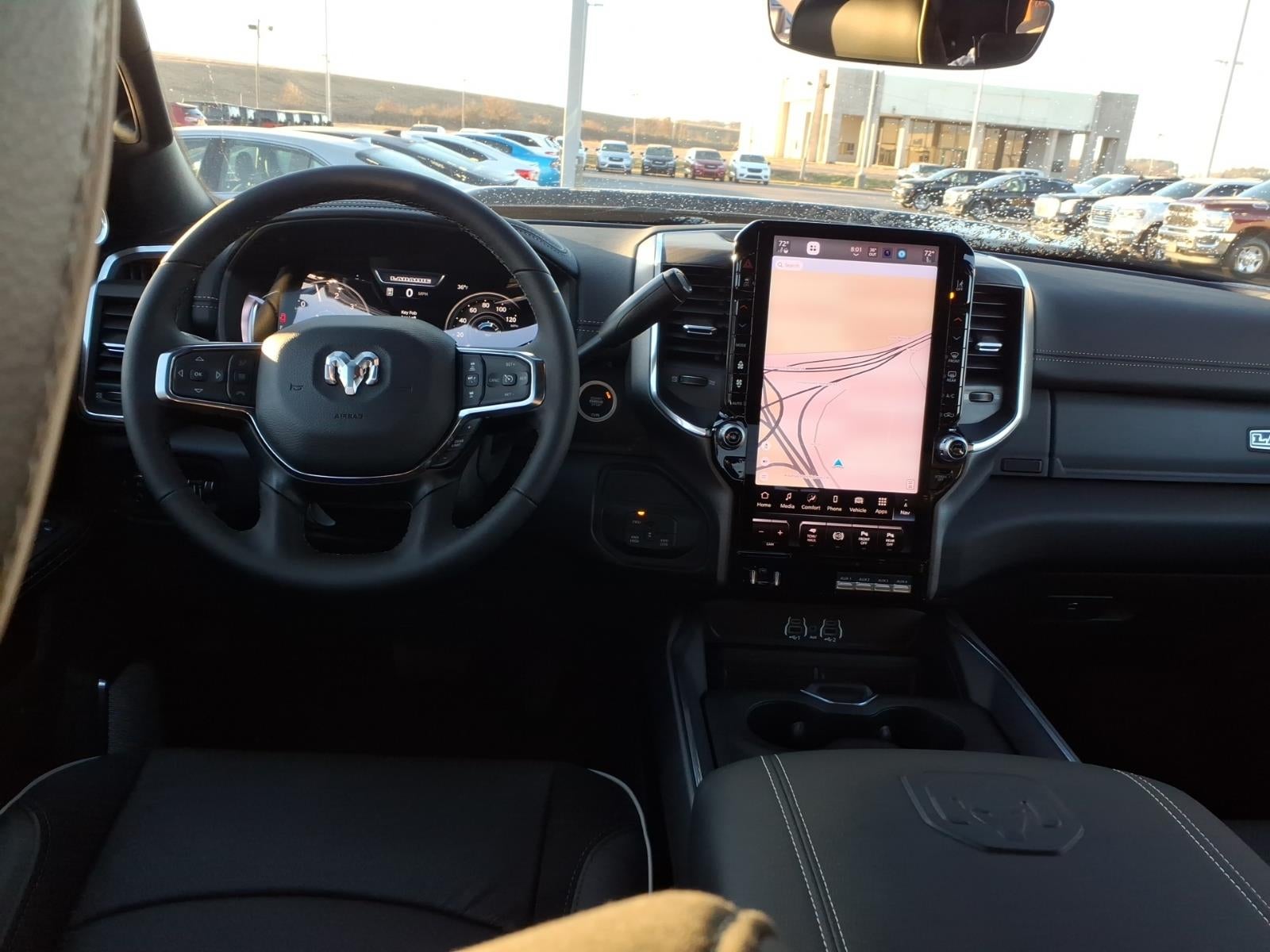 Quick Order Package 24H Laramie. Night Edition: Firestone Brand Tires; LT285/60R20E OWL On/off Road Tires; Black Exterior Truck Badging; 20" X 8" Black Painted Aluminum Wheels; Gloss Black Grille Billets/accents; Body Color Grille Surround; Sport Performance Hood; Black Wheel Center Hub. Towing Technology Group: Surround View Camera System; Trailer Tire Pressure Monitoring System; Trailer Reverse Guidance. Laramie Level 2 Plus Equipment Group: Google Android Auto; SiriusXM Radio Service; Power Adjustable Pedals with Memory; For Details. Visit DriveUconnect.com; For More Info. Call 800-643-2112; Integrated Voice Command with Bluetooth®; Emergency Vehicle Alert System (EVAS); Power Deployable Running Boards; Auto Power-Folding Mirrors; Anti-Spin Differential Rear Axle; Drowsy Driver Detection; Mirror Running Lights; MOPAR Deployable Bed Step; Alexa Built-In; Apple CarPlay; Power Adjustable Convex Aux Mirrors; Active Lane Management System; Forward and Reverse Utility Lights; Disassociated Touchscreen Display; Remote Tailgate Release; 17 Speaker Harman/kardon Premium Sound; Center Stop Lamp with Cargo View Camera; Rain Sensitive Windshield Wipers; LED Bed Lighting; Connectivity - US/Canada; Traffic Sign Recognition; GPS Navigation; 4G LTE Wi-Fi Hot Spot; Adaptive Steering System; GPS Antenna Input; Exterior Mirrors with Heating Element; Auto Dim Exterior Mirror; SiriusXM with 360L; Global Telematics Box Module; Connected Travel and Traffic Services; Foam Bottle Insert (door Trim Panel); Black Exterior Mirrors; Off-Road Information Pages; Selectable Tire Fill Alert; Trailer Tow Pages; Leather Trimmed Bucket Seats; HD Radio; 14.4" Touchscreen Display; Power Heated Fold Telescope Mirrors W/memory; Exterior Mirrors with Supplemental Signals; Exterior Mirrors Courtesy Lamps; Uconnect 5 Nav with 14.4" Display; MOPAR Spray in Bedliner; Auto High Beam Headlamp Control; Exterior Mirrors with Memory; Power Adjust Mirrors; Power Telescoping Mirrors; Auto Dim Exterior Passenger Mirror; Auto Adjust in Reverse Exterior Mirrors. Power Deployable Running Boards. Leather Trimmed Bucket Seats. Center Stop Lamp with Cargo View Camera. MyFlexCare Service Diesel. Diamond Black Crystal PC. Instrument Panel Mounted Auxiliary Switches. MOPAR Front and Rear Rubber Floor Mats. Clearance Lamps. Transfer Case Skid Plate Shield. **Equipment listed is based on original vehicle build and subject to change. Please confirm the accuracy of the included equipment by calling the dealer prior to purchase.**