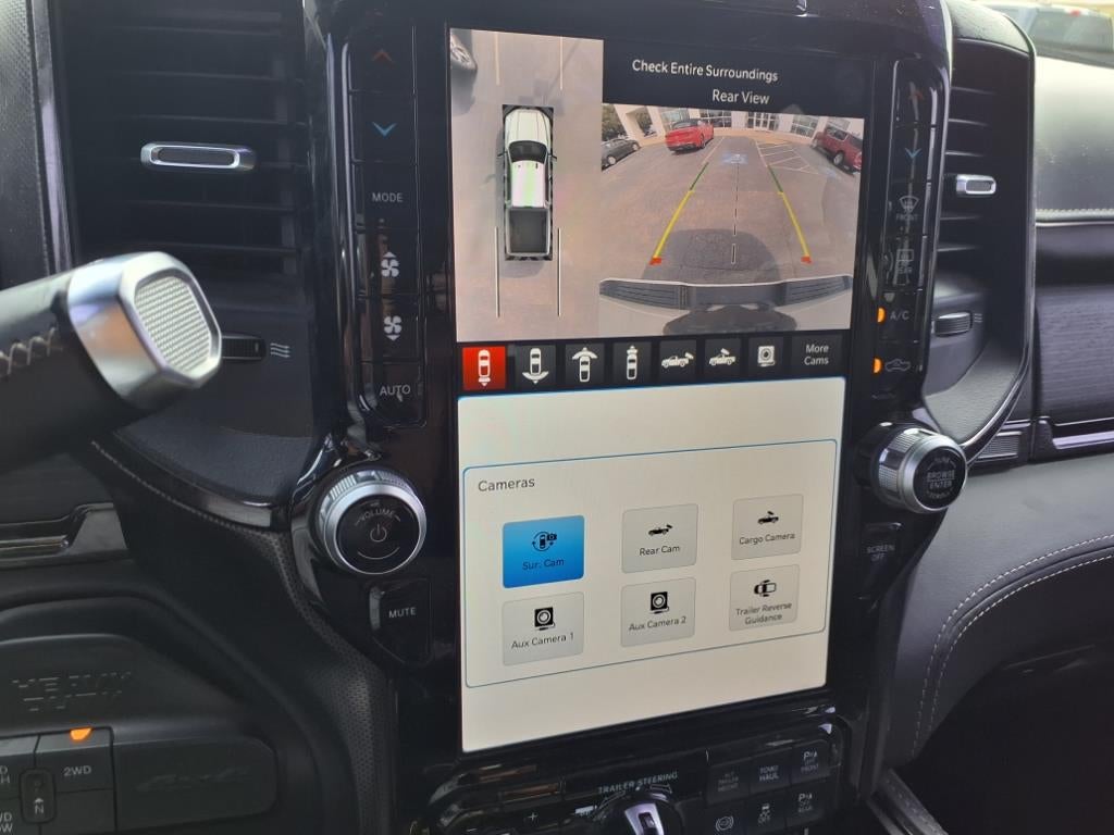 Quick Order Package 2HM Limited. Limited Level 1 Equipment Group: Google Android Auto; SiriusXM Radio Service; Center Stop Lamp with Cargo View Camera; Surround View Camera System; Vendor Painted Cargo Box; For Details. Visit DriveUconnect.com; For More Info. Call 800-643-2112; Integrated Voice Command with Bluetooth®; LED Bed Lighting; Connectivity - US/Canada; Power Deployable Running Boards; 12" Touchscreen Display; GPS Navigation; 4G LTE Wi-Fi Hot Spot; RamBox Cargo Management System; Adaptive Steering System; GPS Antenna Input; SiriusXM with 360L; Global Telematics Box Module; Connected Travel and Traffic Services; Alexa Built-In; Trailer Reverse Guidance; Vendor Painted Cargo Box Tracking; Apple CarPlay; Off-Road Information Pages; Selectable Tire Fill Alert; Trailer Tow Pages; Disassociated Touchscreen Display; HD Radio; Ramcharger Wireless Charging Pad; Uconnect 5 Navigation with 12.0" Display Radio; 4 Adjustable Cargo Tie-Down Hooks; Full Speed Forward Collision Warning Plus; MOPAR Spray in Bedliner; 17 Speaker Harman/kardon Premium Sound; Truck Bed Cargo Divider; Adaptive Cruise Control with Stop; Digital Rearview Mirror; Lane Keep Assist. Night Edition: Black Exterior Truck Badging; Black Ram Head Tailgate Badge; Body Color Grille Surround; Black Headlamp Bezels; Sport Performance Hood; Black Grille Limited; 20" X 8.0" Cast Aluminum Black Wheels; Black Wheel Center Hub; Black Tail Lamp Bezels. Tow Technology Plus Group: Trailer Reverse Steering Control; Digital 3.0 Rear View Auto Dimming Mirror. Auto Level Rear Air Suspension. Power Sunroof. 5th Wheel/gooseneck Towing Prep Group. MOPAR Deployable Bed Step. Center Stop Lamp with Cargo View Camera. Adaptive Steering System. Pearl White. Clearance Lamps. **Equipment listed is based on original vehicle build and subject to change. Please confirm the accuracy of the included equipment by calling the dealer prior to purchase.**